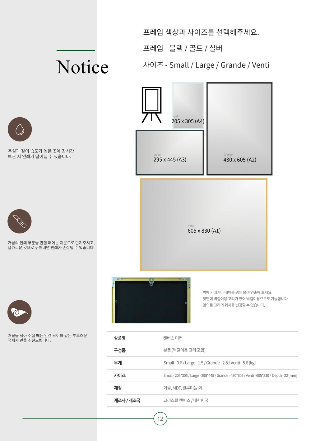 - 맞춤제작 제품에 경우 단순 변심의 경우 교환∙반품이 불가합니다.