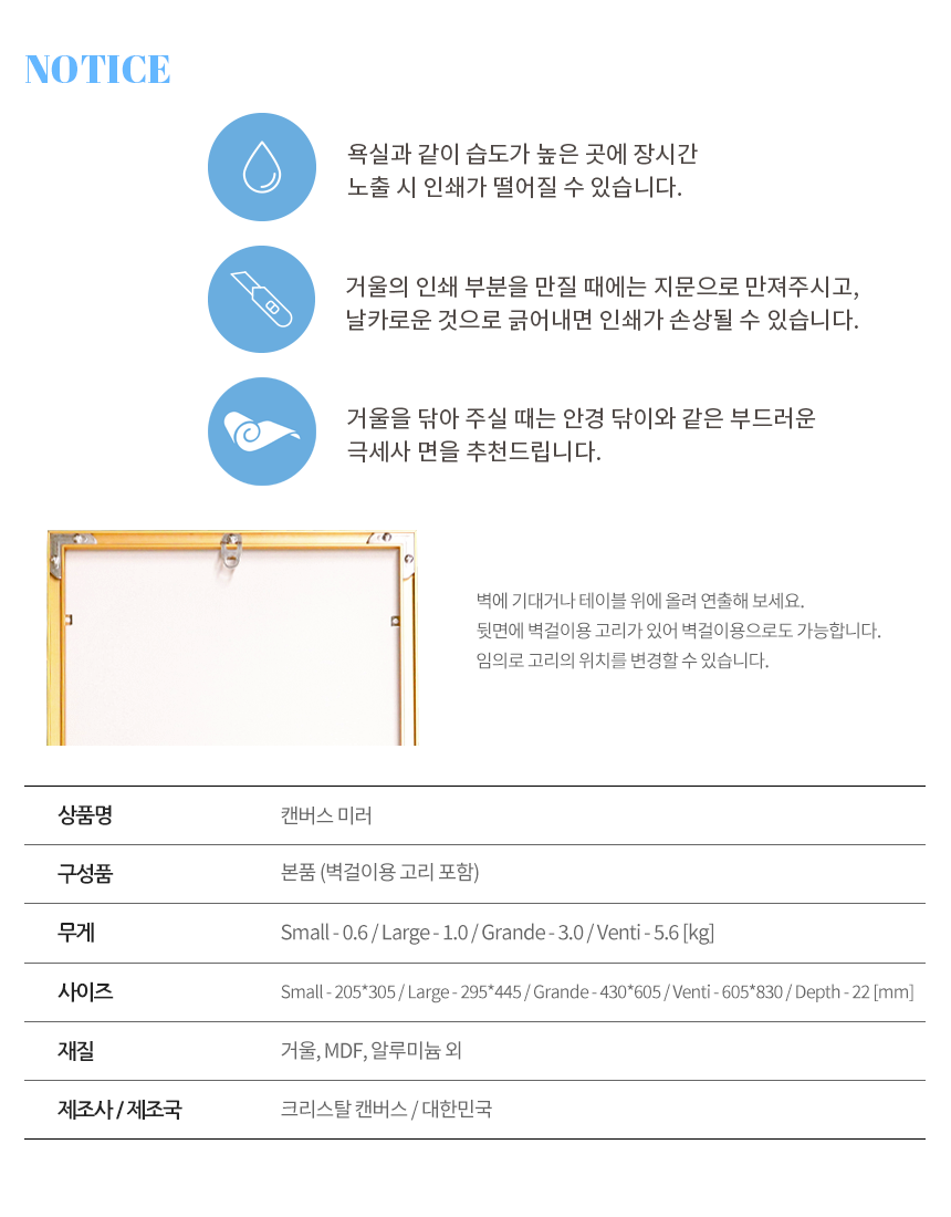 - 제품 특성상 단순 변심, 부주의에 의한 제품 손상 및 파손, 사용 및 개봉한 경우 교환/반품이 불가합니다.